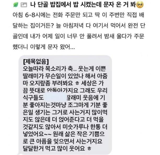 단골 밥집에서 주문 후 사장님이 보낸 문자