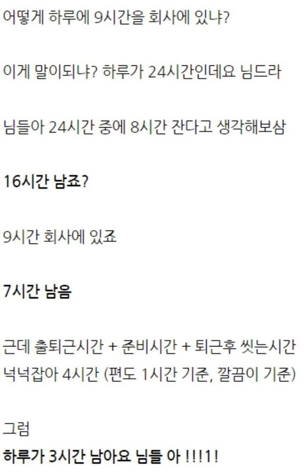 어떻게 하루 9시간을 일함?