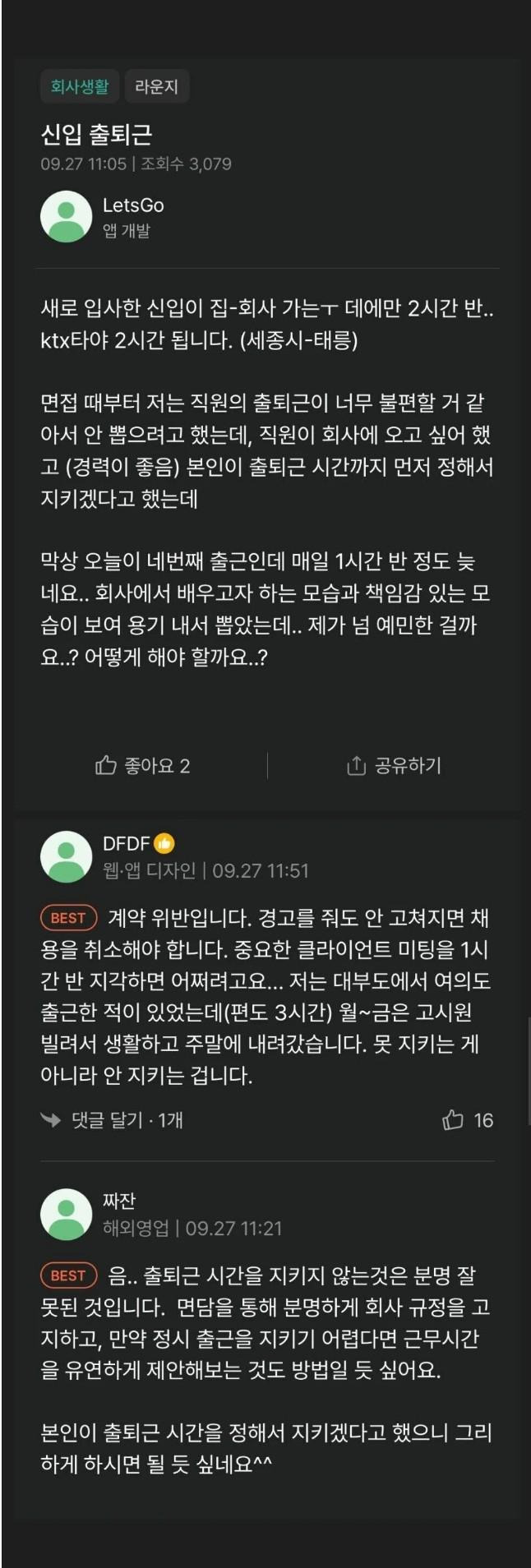 매일 1시간 30분 늦는 신입사원