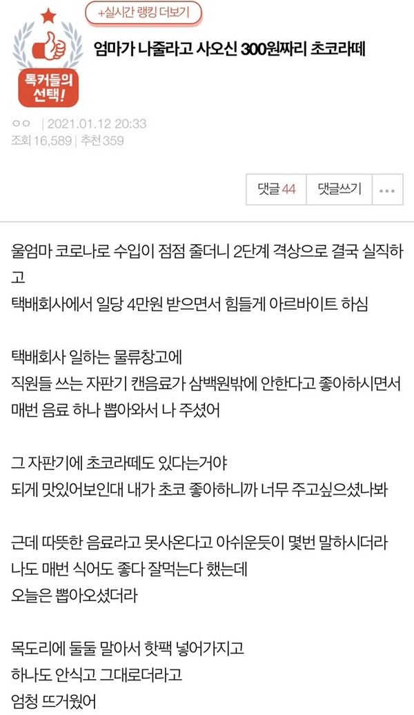 엄마가 나 주려고 사오신 300원 초코라떼