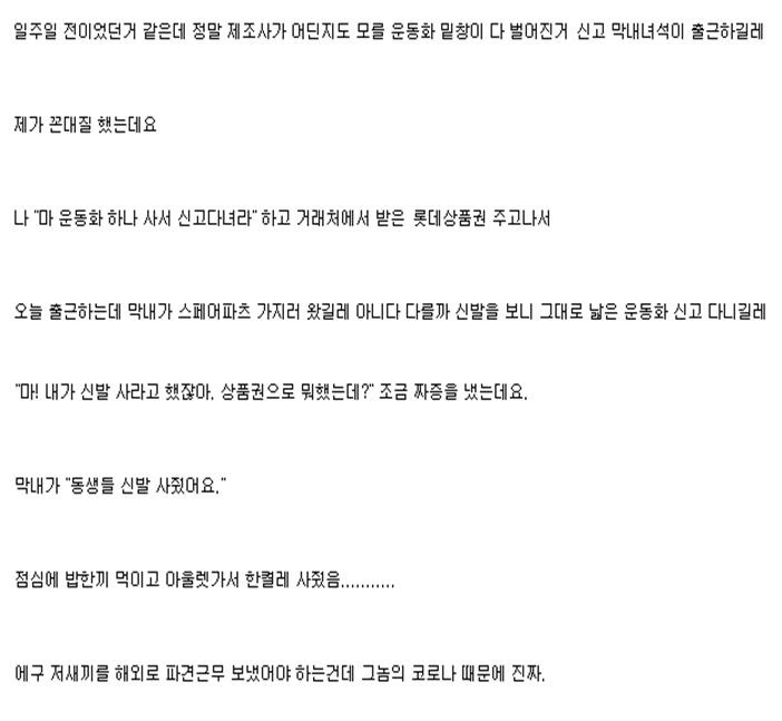막내 직원이 다 떨어진 운동화로 출근하길래