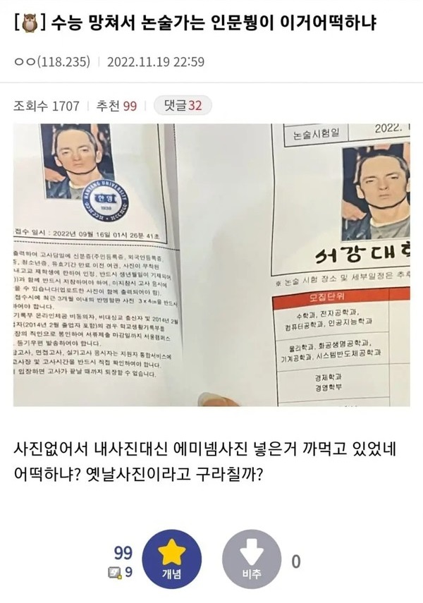 서강대 한양대 논술 가는 에미넴