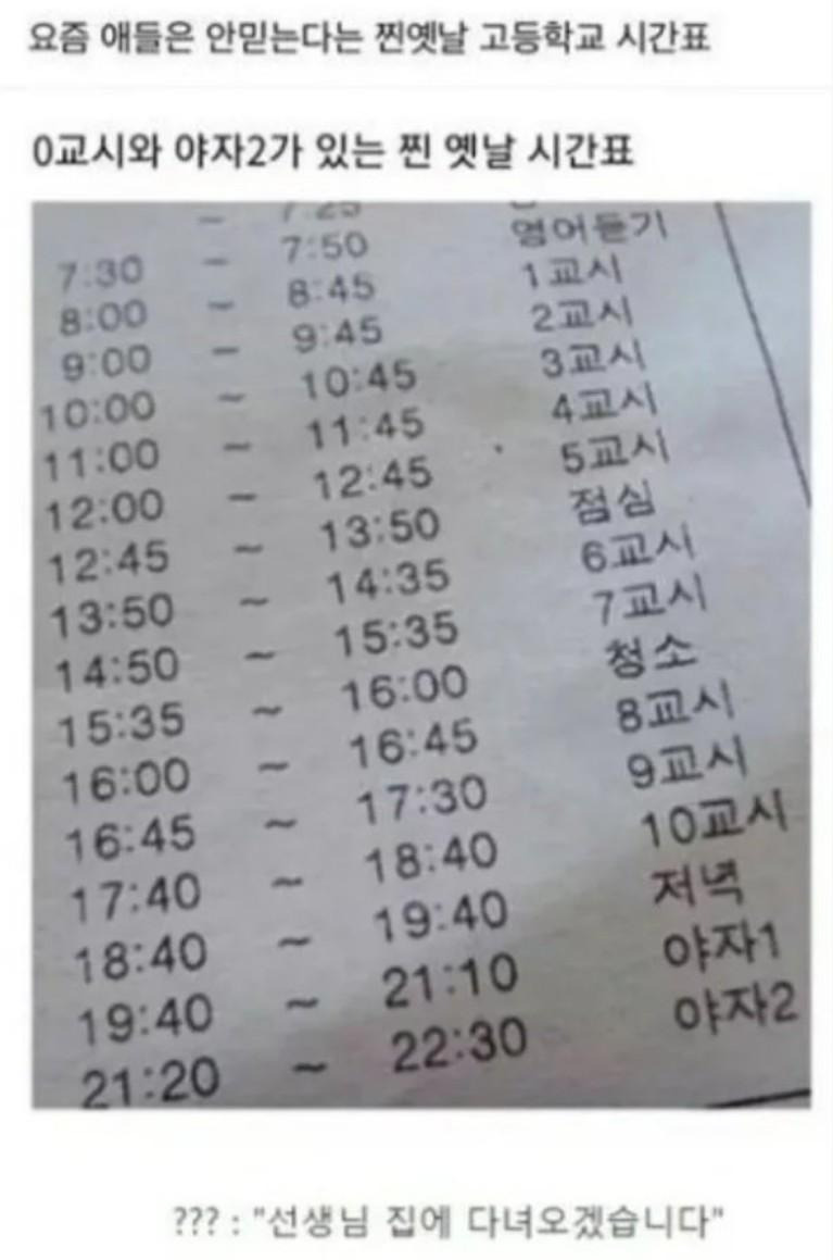 요즘 애들은 안 믿는 옛날 고등학교 시간표
