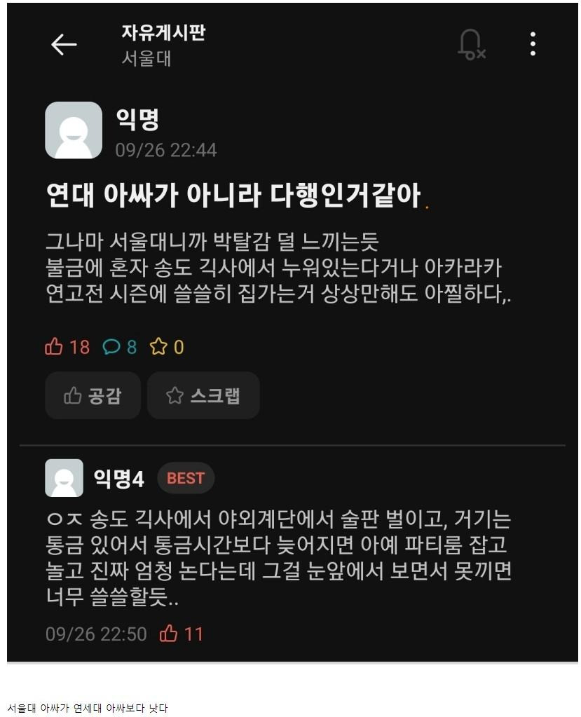 서울대생이 말하는 연세대 안 가서 좋은 점