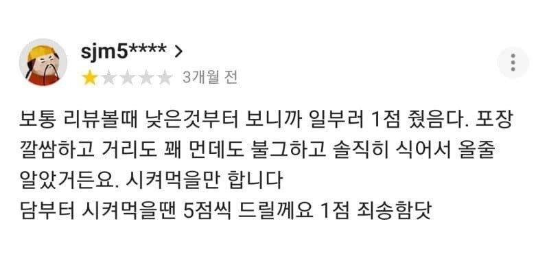 배민 리뷰 단 1점 준 이유