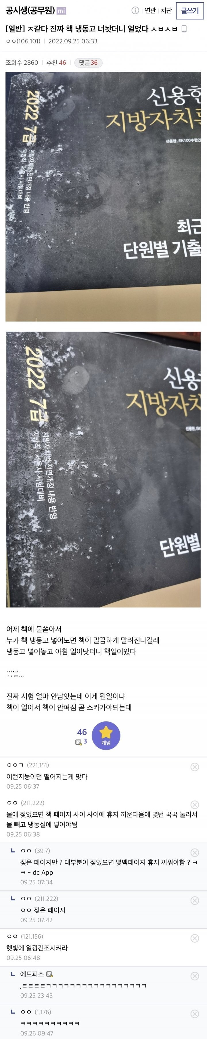 젖은 공시책 냉동실에 넣어둔 공갤러