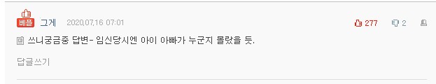 누구애인지도 모르다가 커가는 거 보고 알아서 이제야