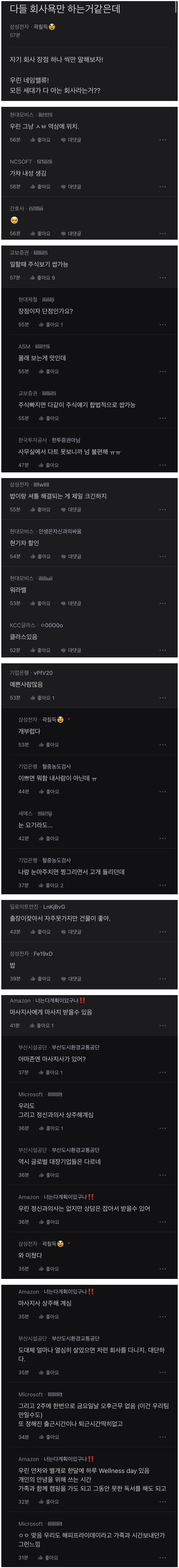 현직자들이 말하는 자기 회사 장점