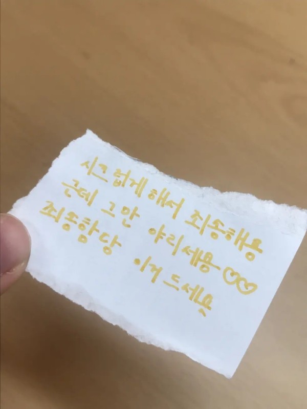 독서실에서 받은 설레는 쪽지 내용