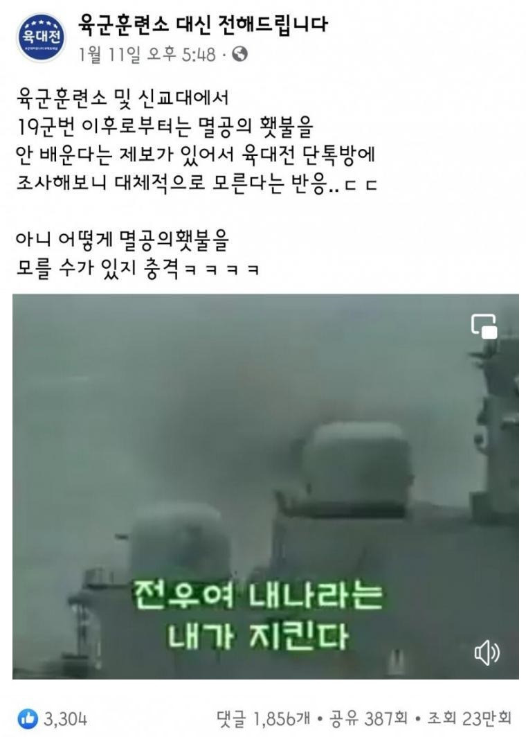 19군번 이후 멸공의 횃불을 안 배운다