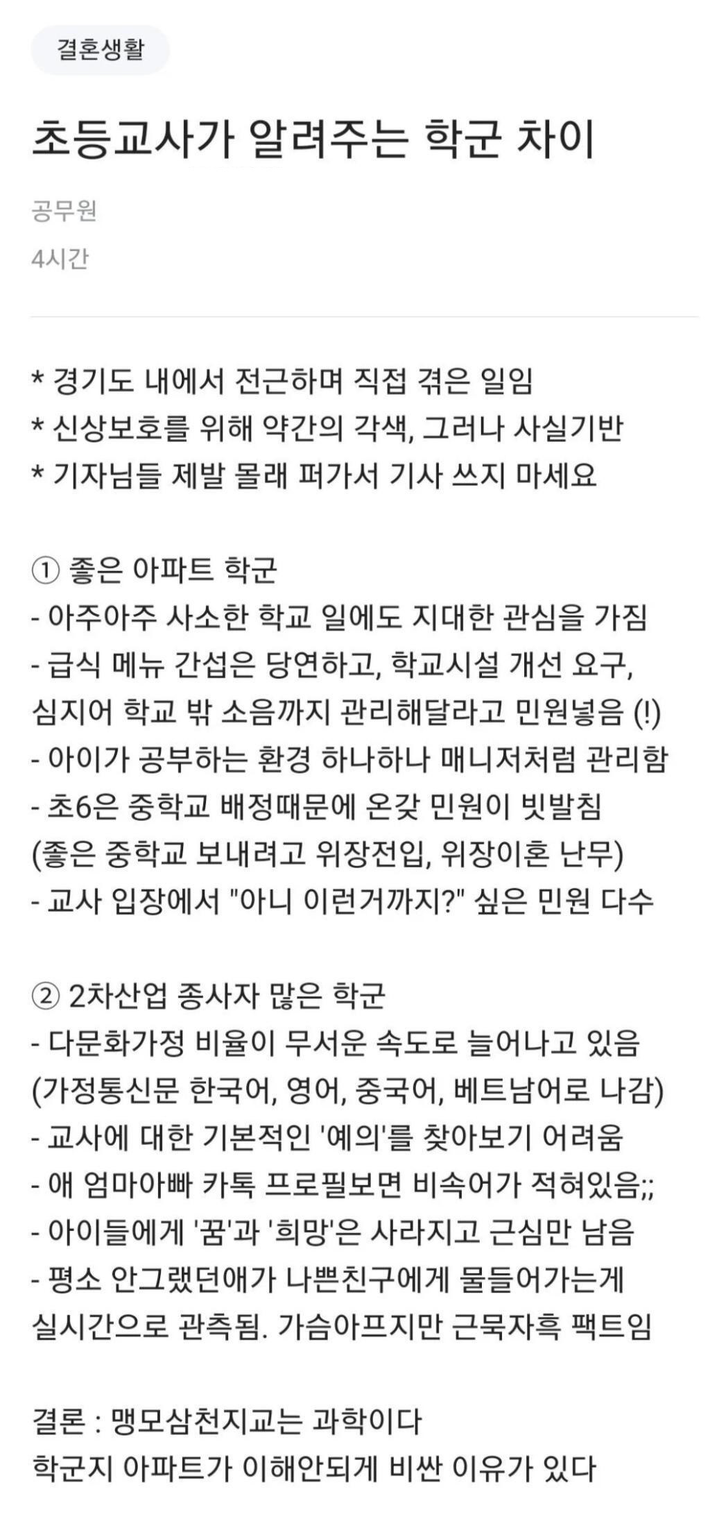 초등 교사가 알려주는 학군 차이