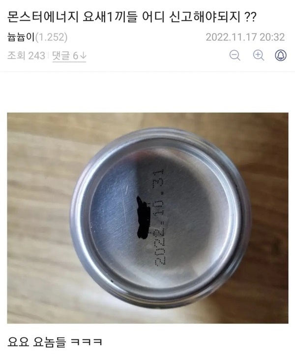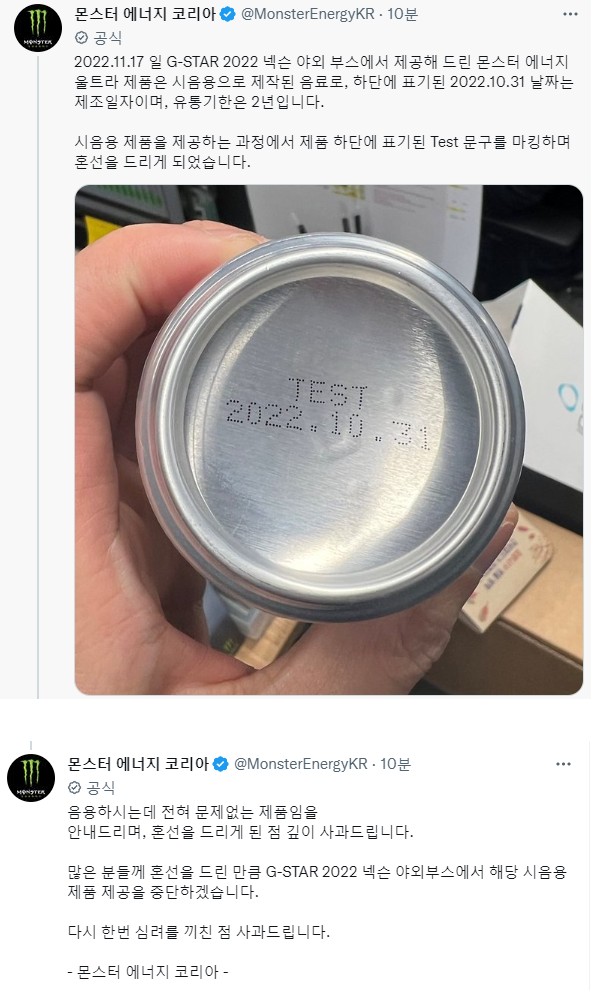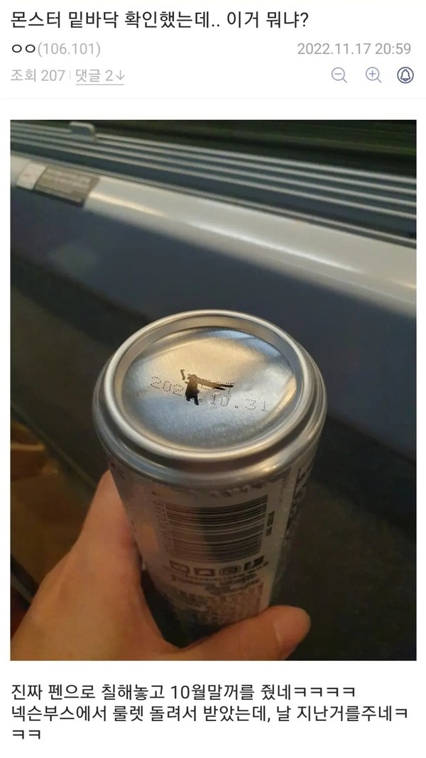 유통기한을 제품 밑 표시일까지라고 써놧으니까 몬스터가 잘못했네