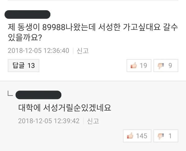 제 동생이 89988 나왔는데