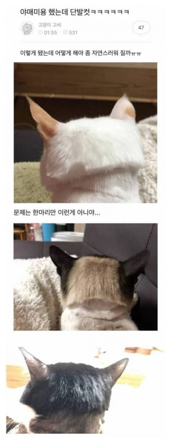 고양이 셀프 미용 대참사