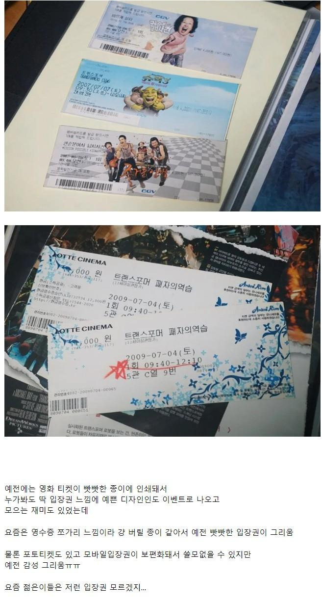 솔직히 그리운 옛날 영화 티켓 갬성