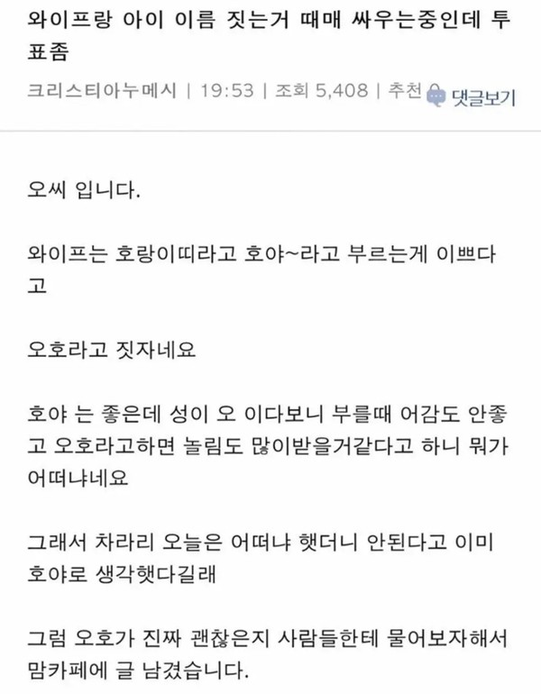 와이프랑 아이 이름 짓는 거로 싸우는 이유