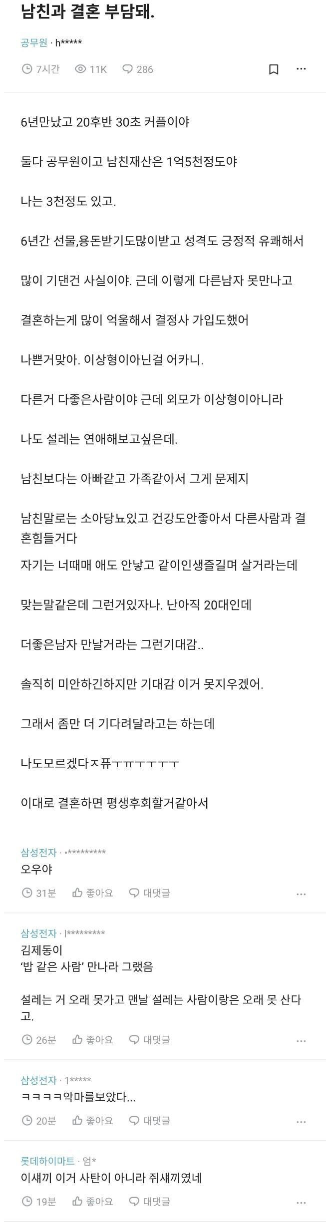 6년 만난 남친과 결혼은 부담돼