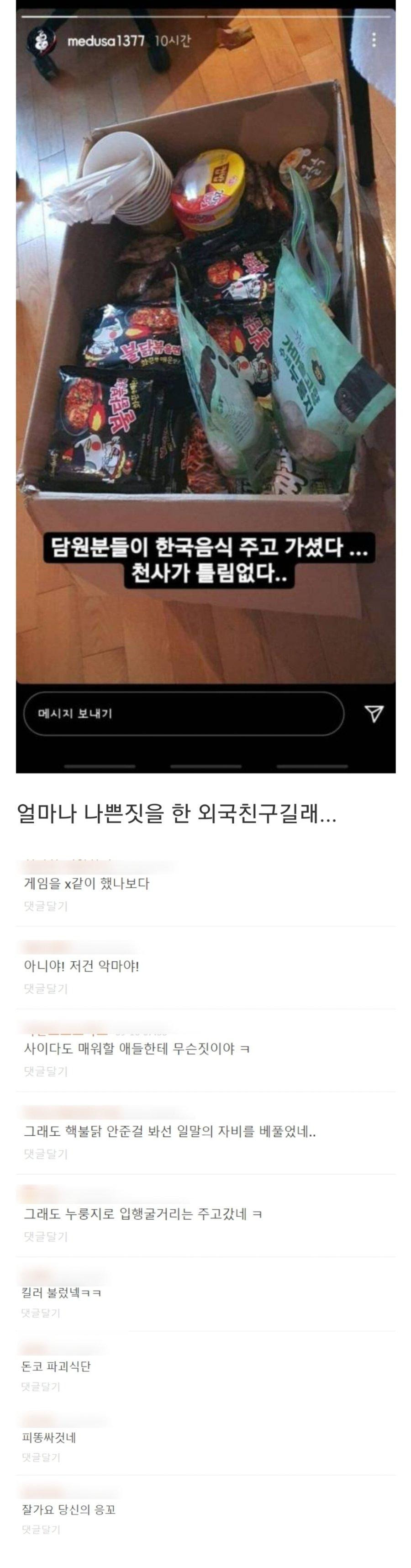 한국 친구들 한국 음식 선물로 주고 갔다...