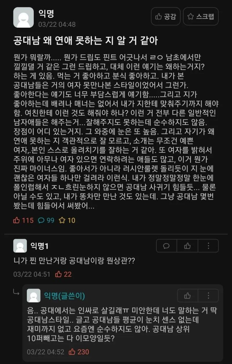 공대남 왜 연애 못하는지 알 거 같아