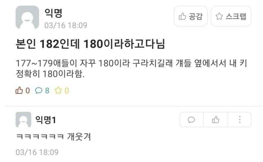 자기 키 속이고 다니는 182cm 남자
