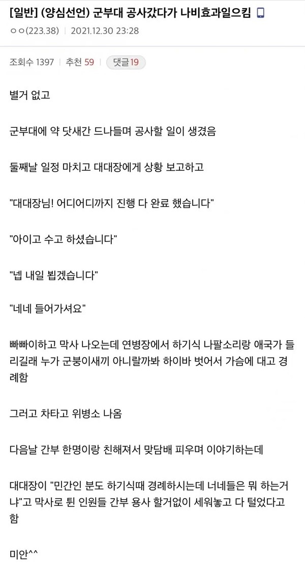 군부대 공사 갔다가 나비효과 일으킨 썰