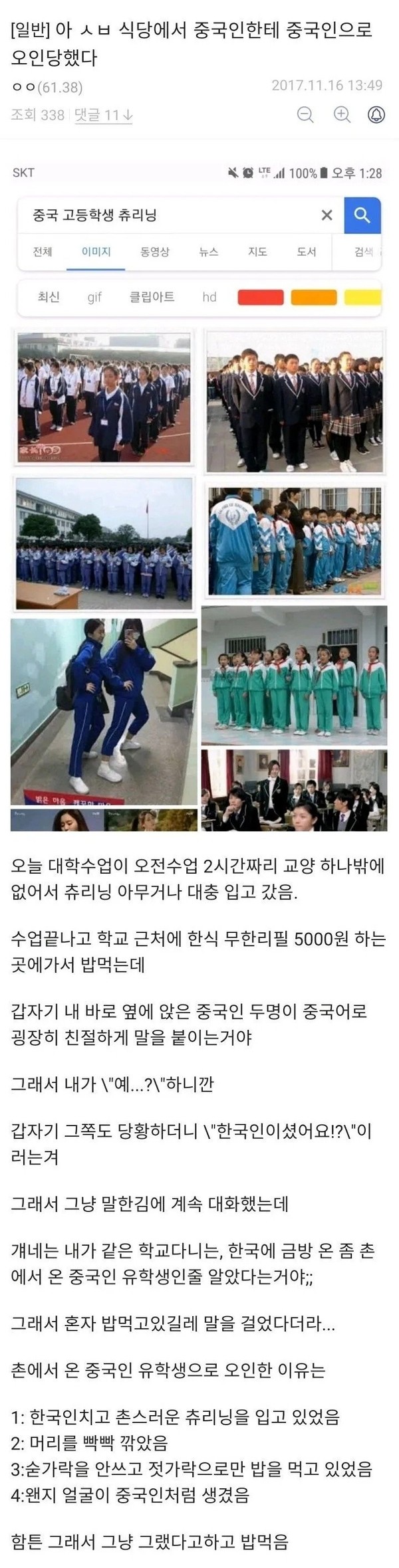 혼밥하다 중국인으로 오해 받은 사람
