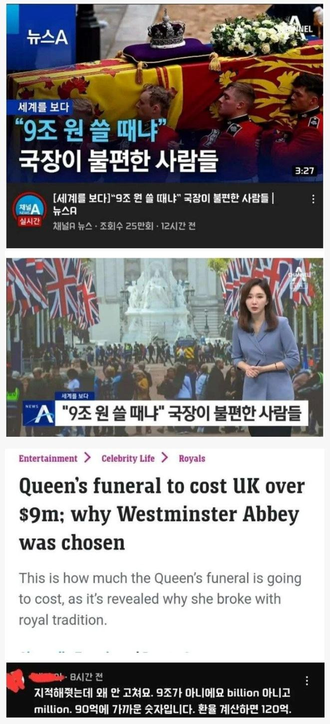 엘리자베스 여왕 국장 9조원 비용 논란
