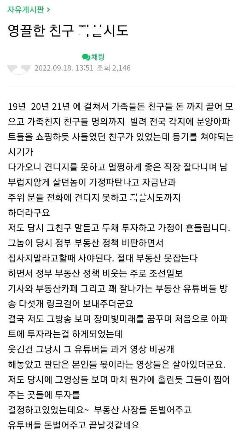 영끌 했던 친구 근황