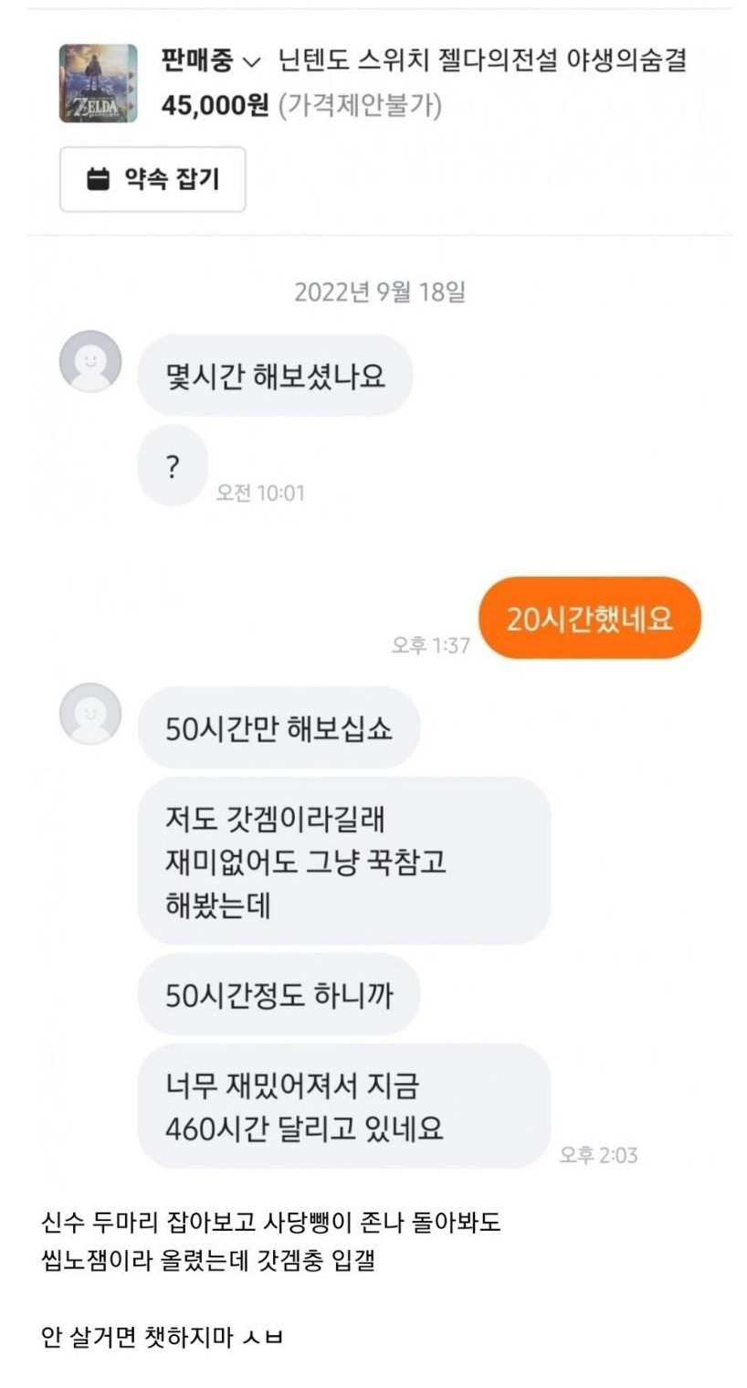 당근마켓에서 게임 파는데 온 메시지