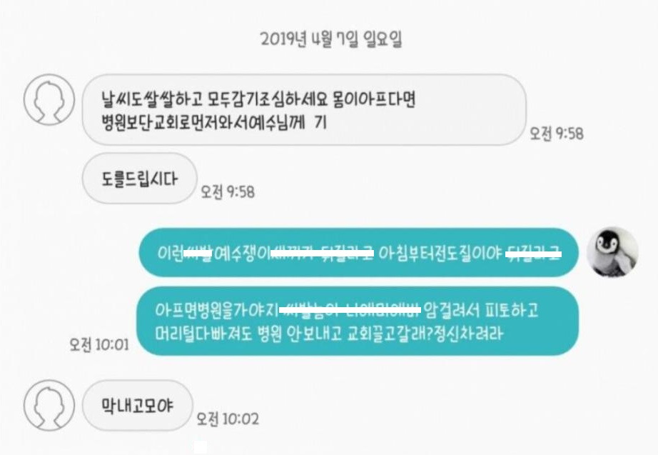 아침부터 예수쟁이 문자 받은 사람 레전드