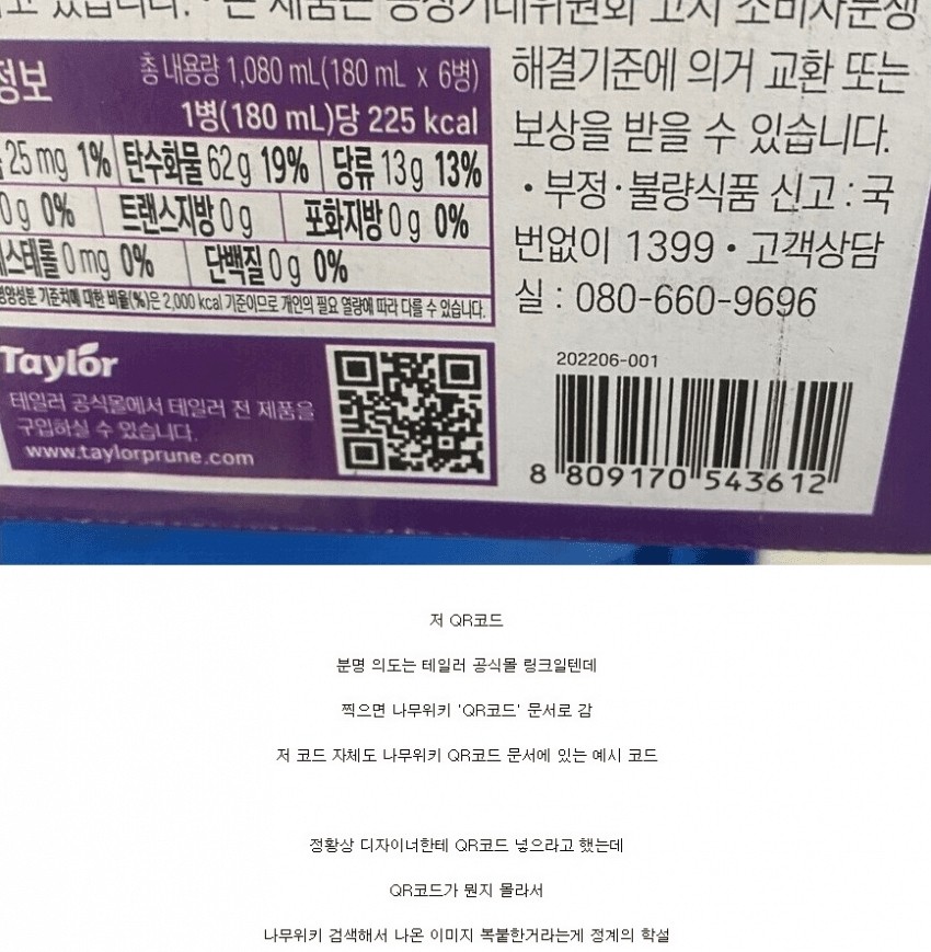 담당자가 실수한 식품 홍보 QR코드