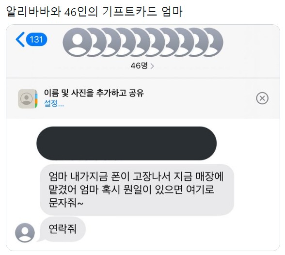 알리바바와 46인의 기프트카드 엄마