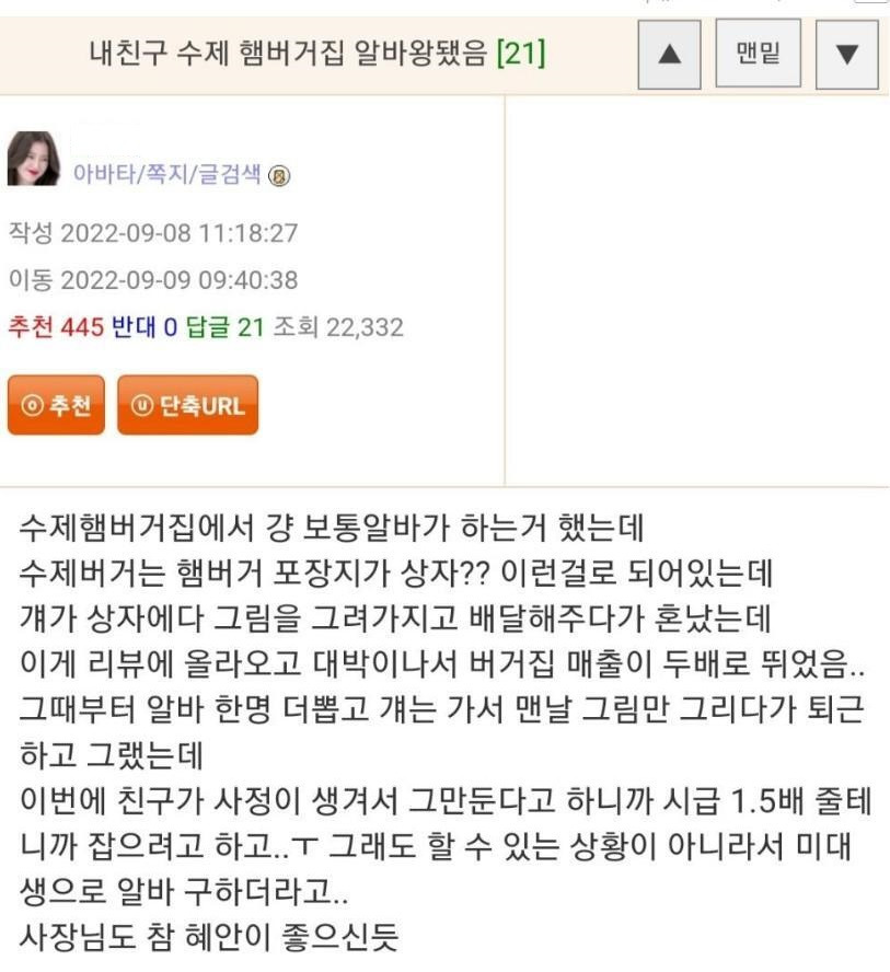 내 친구 수제 버거 집 알바왕 됨