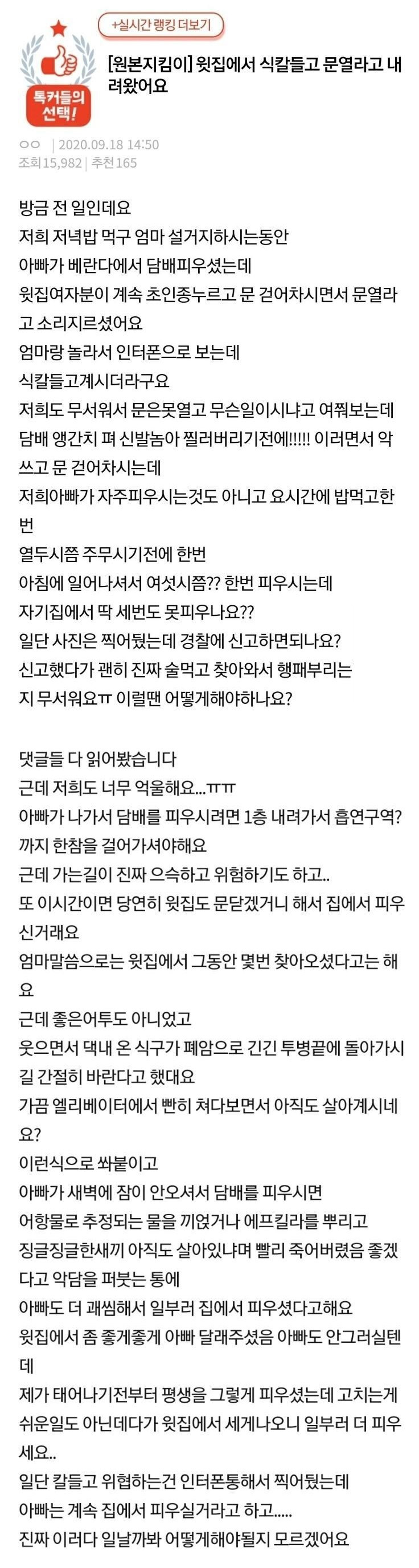 윗집에서 칼 들고 내려왔어요