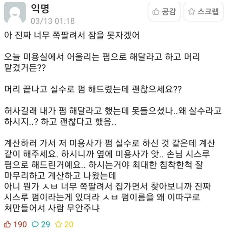 미용사가 실수로 펌 함