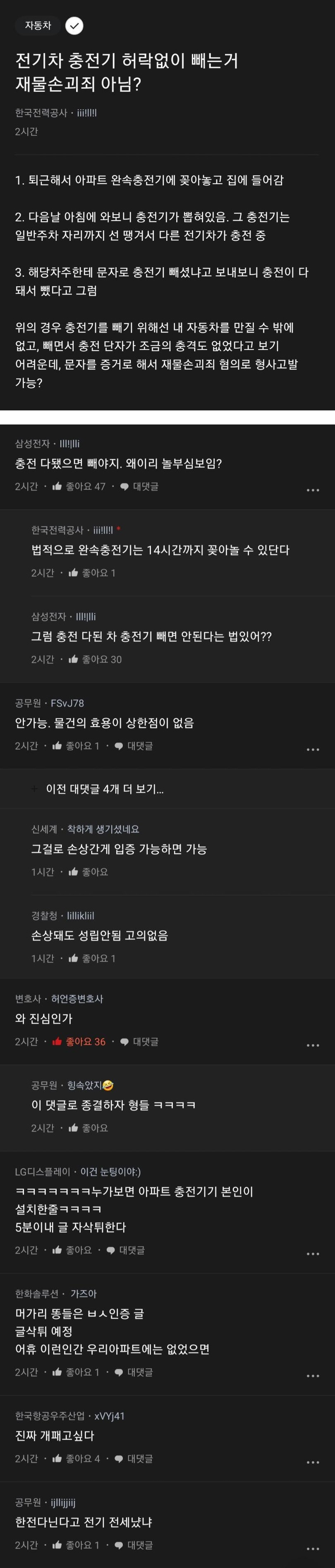 전기차 충전기 뽑혀있어서 화난 한전 직원