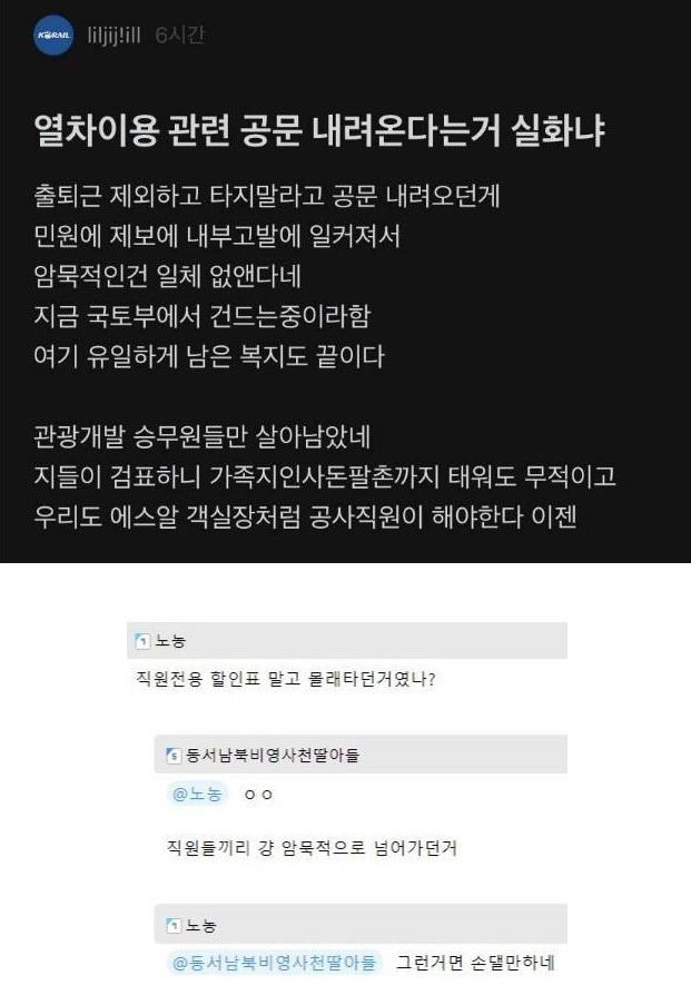 마지막 복지가 사라졌다는 코레일 직원