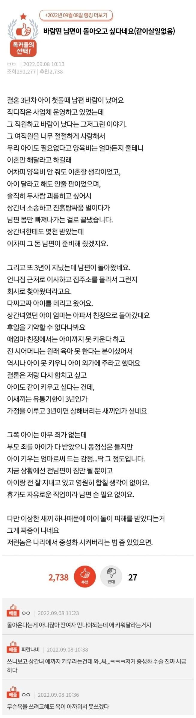 바람 핀 남편이 돌아오고 싶다네요