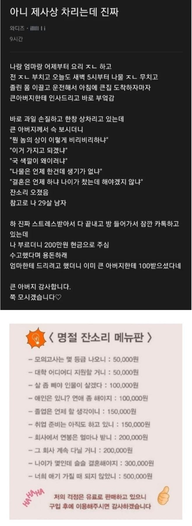 명절 차례 상 차리다 큰아버지 때문에 빡침
