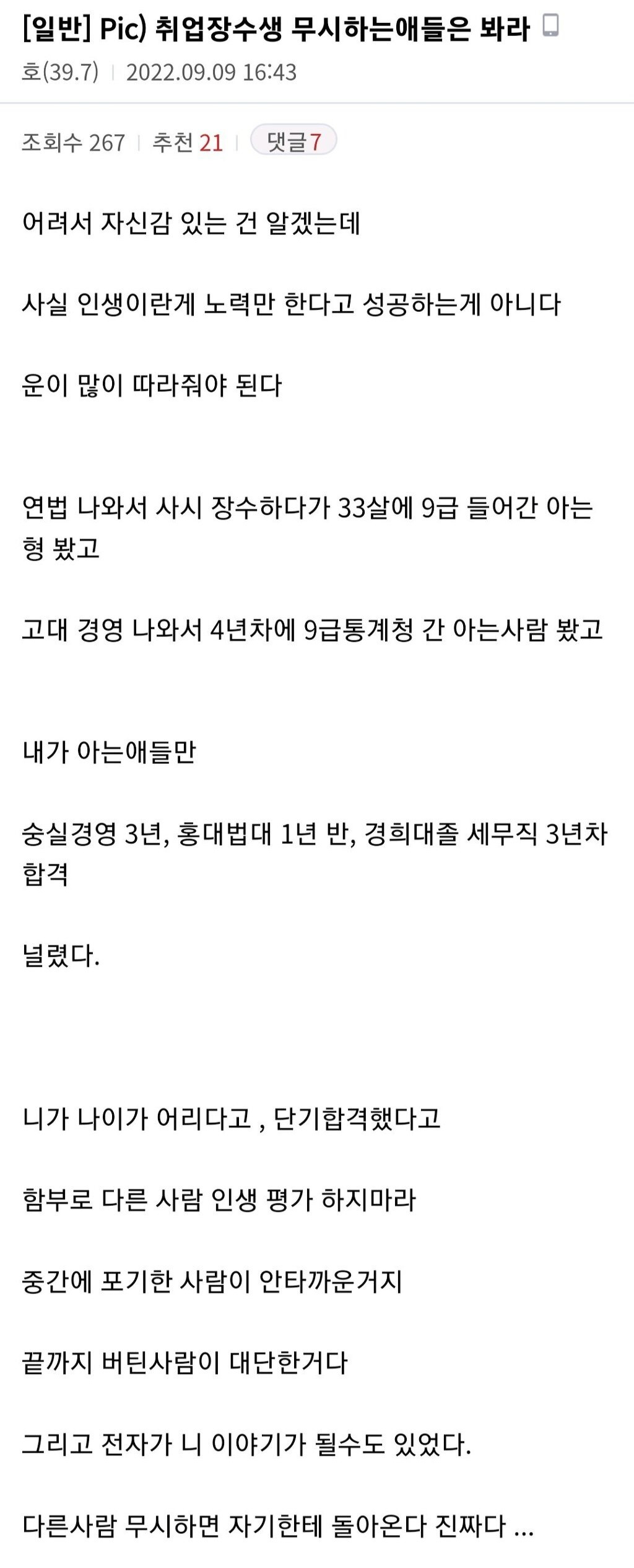 취업 장수생 무시 하지 마라