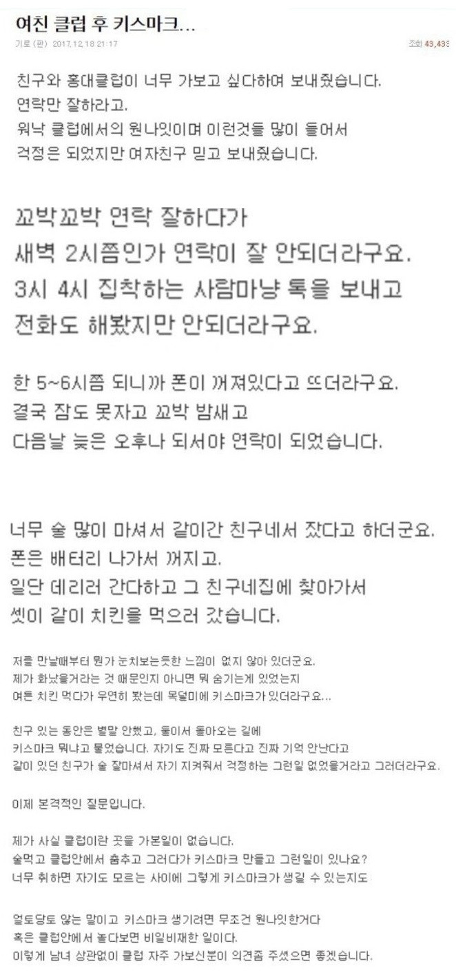 여친 클럽 다녀온 후 생긴 키스 마크