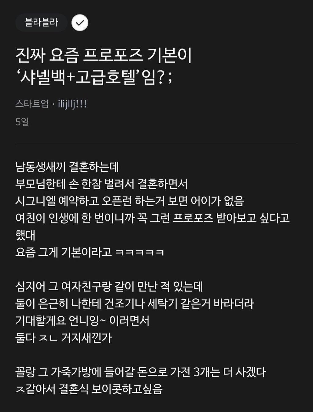블라인드에서 욕 먹는 요즘 결혼 필수 테크