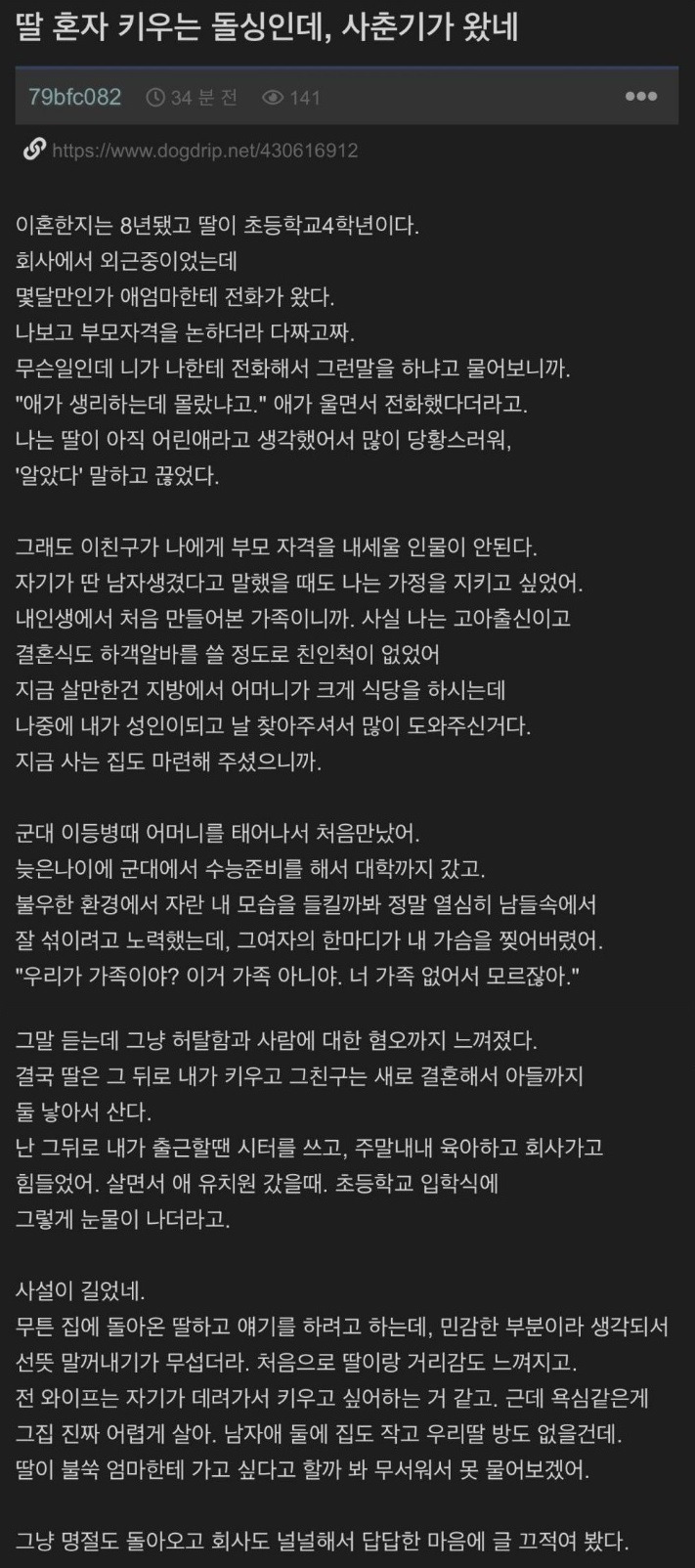 사춘기 온 딸 혼자 키우는 돌싱남