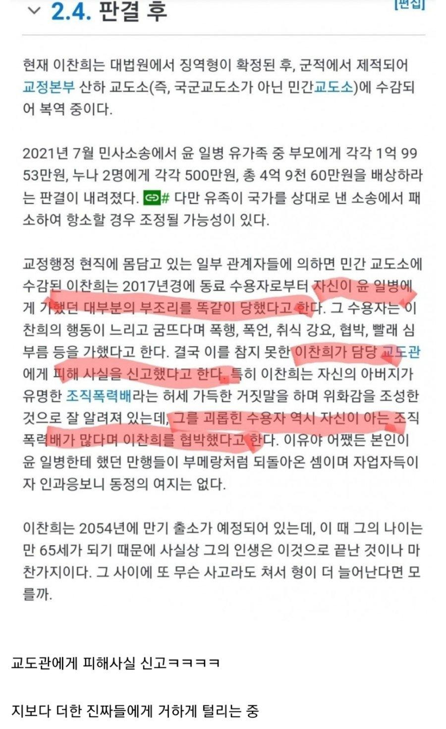 윤일병 사건 가해자의 교도소 생활
