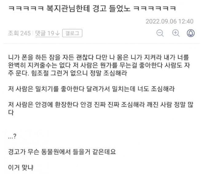 복지관에 배정 받은 공익이 첫 날 들은 말
