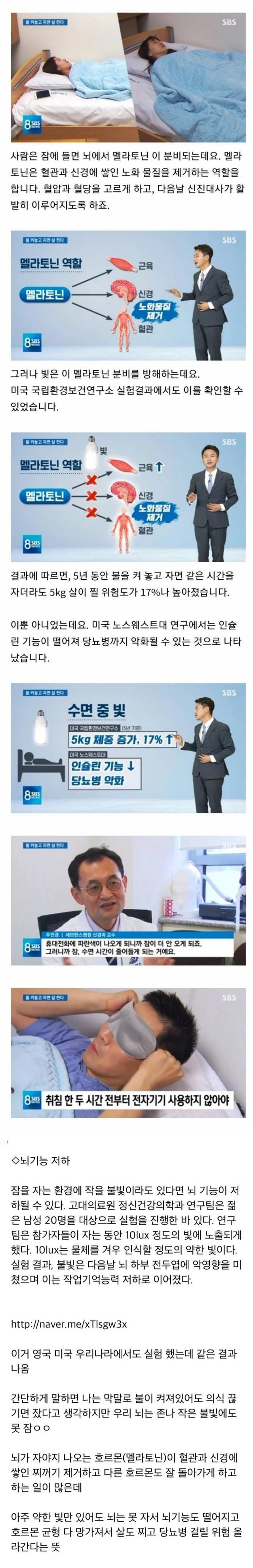 불 켜놓고 자면 돼지 + 뇌 기능 저하
