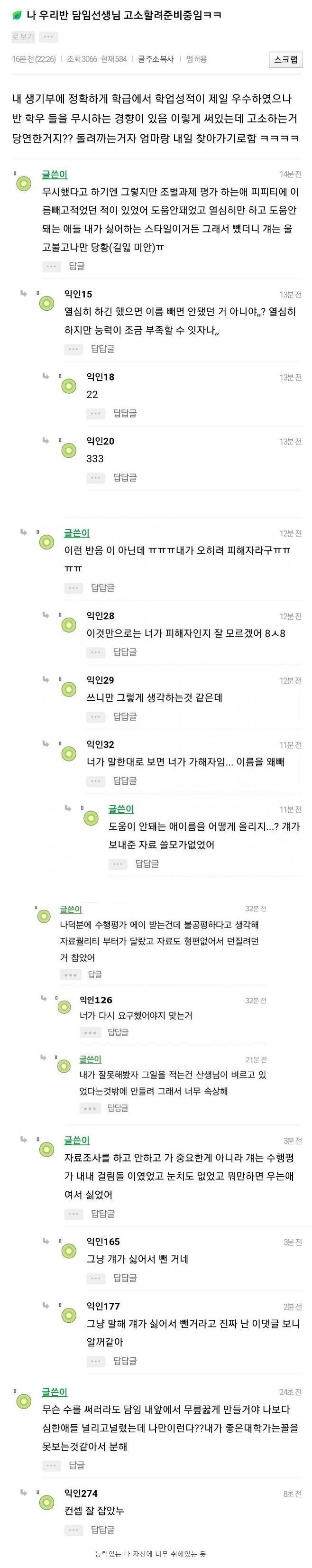 담임 선생님 고소 준비 중인 여고생