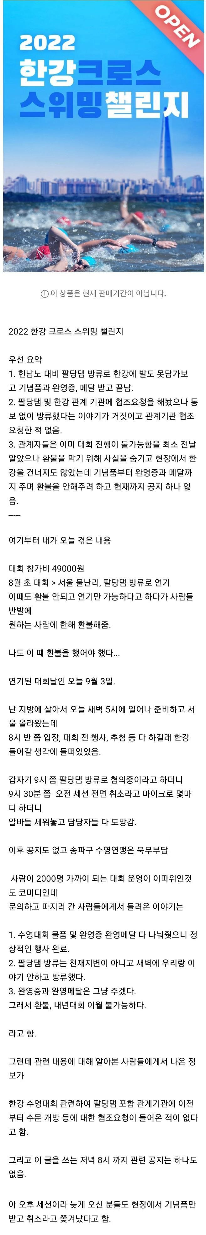 먹튀 논란중인 2022 한강 수영 챌린지