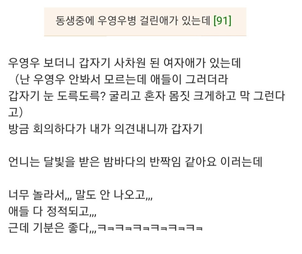 동생 중에 우영우병 걸린 애가 있는데