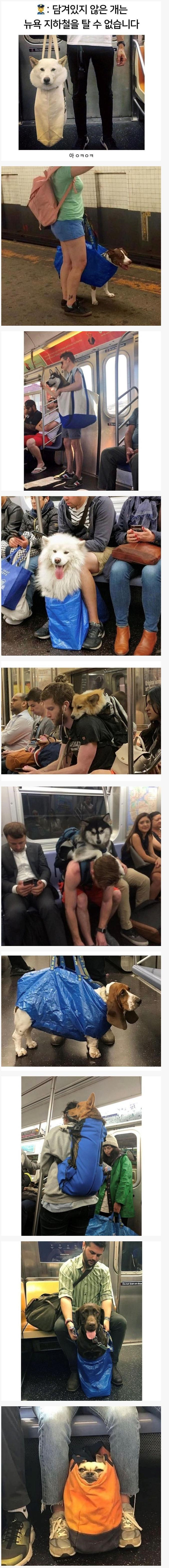 담겨있지 않은 개는 지하철을 탈 수 없습니다